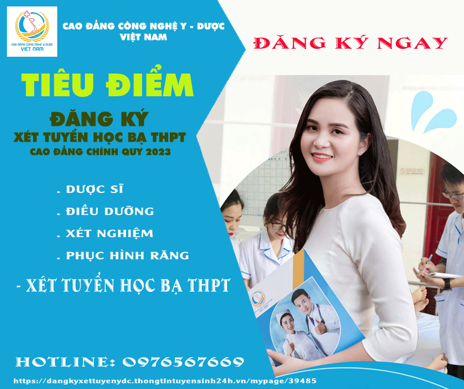 Trường cao đẳng công nghệ y - dược Việt Nam thông báo xét tuyển hệ cao đẳng chính quy các chuyên ngành như sau: