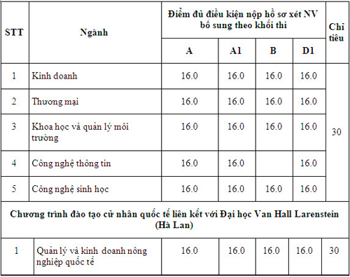 Đại học Nông lâm xét tuyển nguyện vọng bổ sung